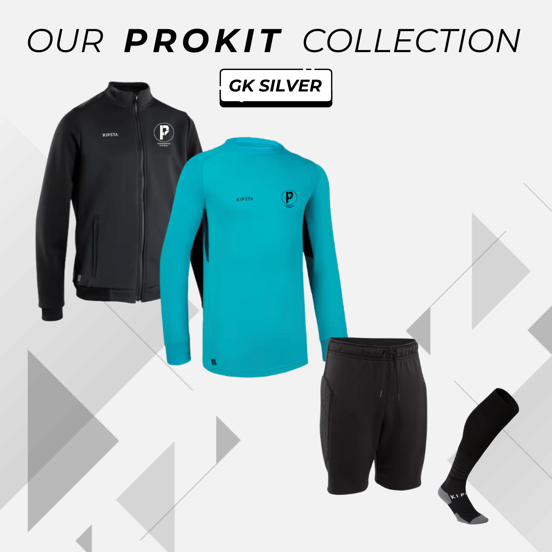 Introducing our Prokit GK Bundles, a dynamic combination of style and functionality for goalkeepers. The eye-catching Turquoise GK shirt has the signature Proformance Football logo and sponsor logo on the back, ensuring you make a bold statement on the field. Complemented by a sleek black training jacket featuring matching logos, as well as training shorts and socks, this kit is designed for optimal performance during every training session.