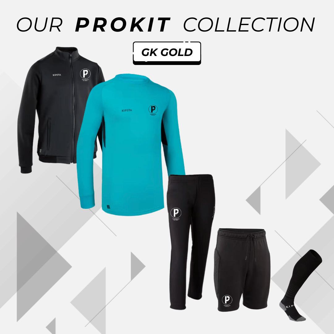Introducing our Prokit GK Bundles, which include a striking Turqouise GK shirt with our Proformance Football logo and sponsor logo on the back, ensuring you stand out on the field. Paired with a sleek black training jacket featuring matching logos, as well as training shorts, bottoms, and socks. This kit seamlessly combines style with functionality, delivering optimal performance during every training session.