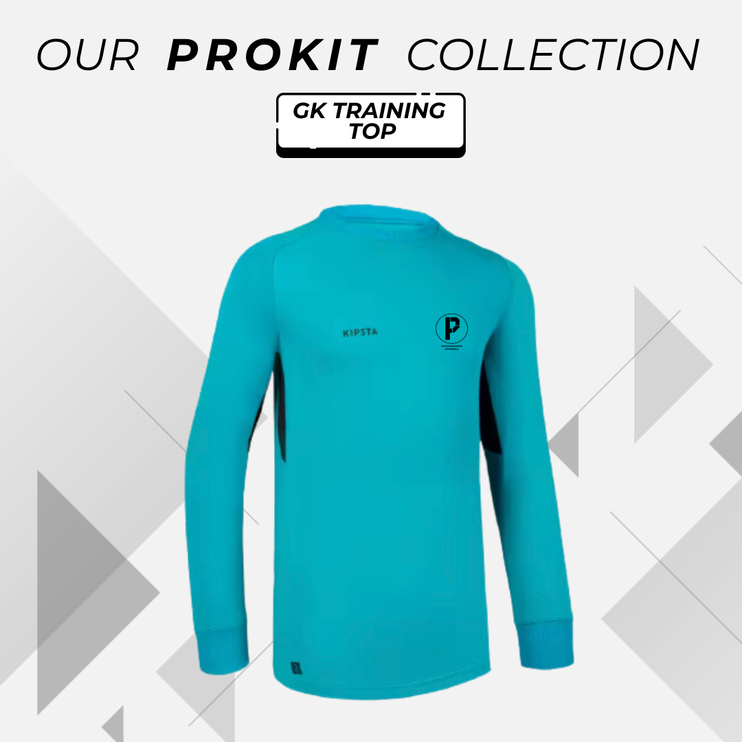 Introducing our Prokit GK Training Top in vibrant turquoise. Crafted with precision, this shirt features the Proformance Football logo and a sponsor logo on the back. Designed for optimal comfort and unrestricted movement, it's the perfect choice where comfort meets style on the training ground.